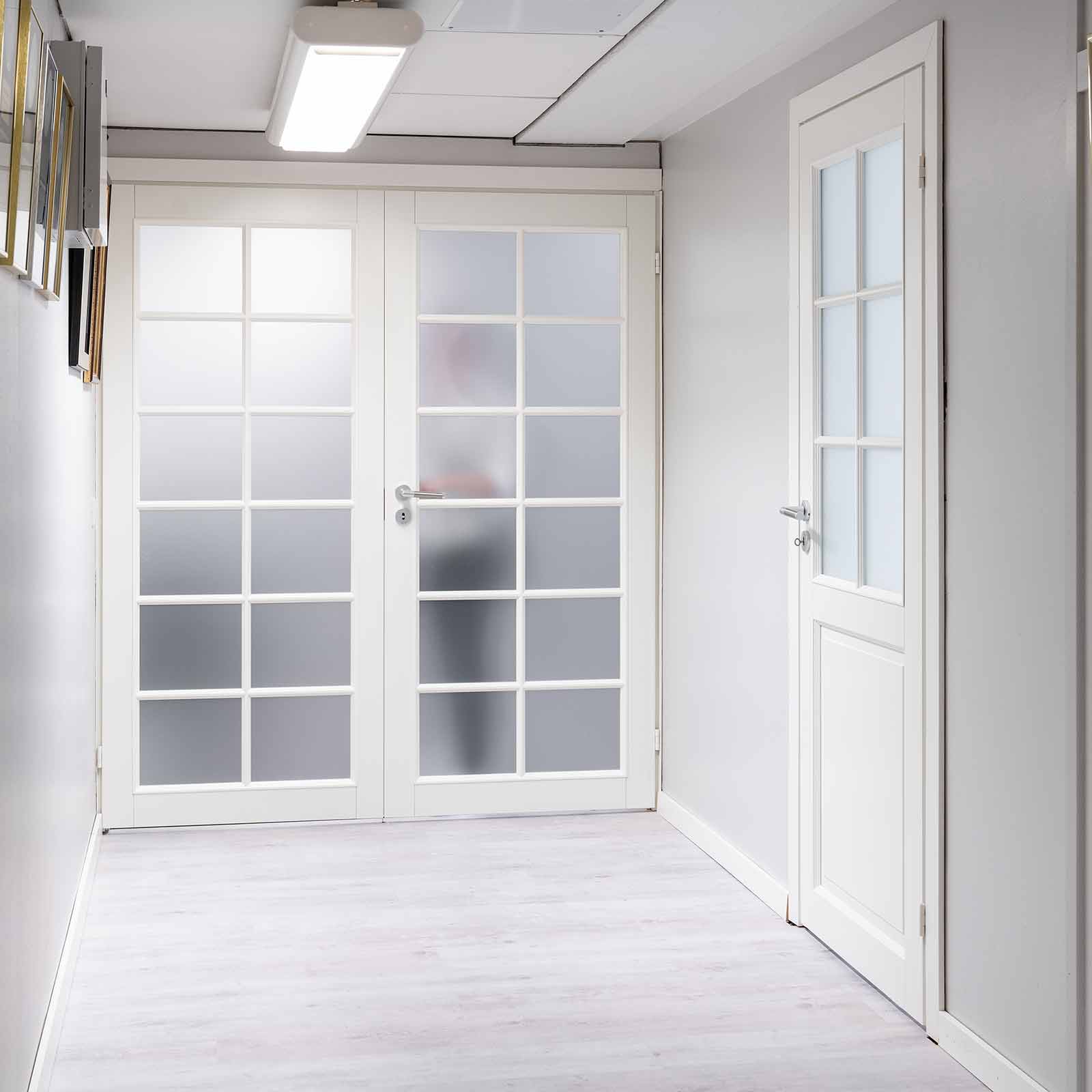 Erikoismittainen pariovisetti Craft 105 on arvokas ja näyttävä ratkaisu kohteisiin, joissa halutaan yhdistää klassinen 12-ruutuinen lasijako ja mittatilaustyön tarkkuus. Runsas ruuturytmi tuo tilaan valoa ja arkkitehtonista ilmettä, samalla kun symmetrinen pariovirakenne tekee kulkuaukosta näyttävän osan sisustusta.