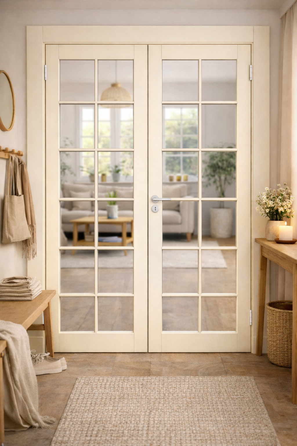 ✨ Erikoismittainen pariovisetti Craft 105 on erinomainen valinta, kun etsit 12-ruutuista, lasitettua ja mittatilaustyönä valmistettua pariovea, joka tuo tilaan runsaasti valoa, klassista rytmiä ja ajattoman arvokkaan ilmeen.