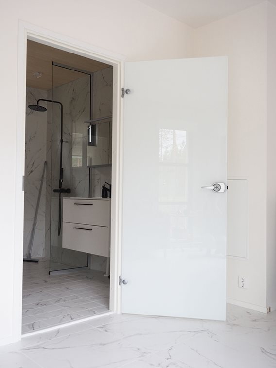 Spa Lumi+ soveltuu erinomaisesti kylpyhuoneen oveksi, mutta toimii loistavasti myös muissa kodin tiloissa, joissa halutaan kevyttä, modernia ja valoisaa ilmettä – esimerkiksi pukeutumistiloihin, kodinhoitohuoneisiin tai minimalistiseen makuuhuoneeseen.