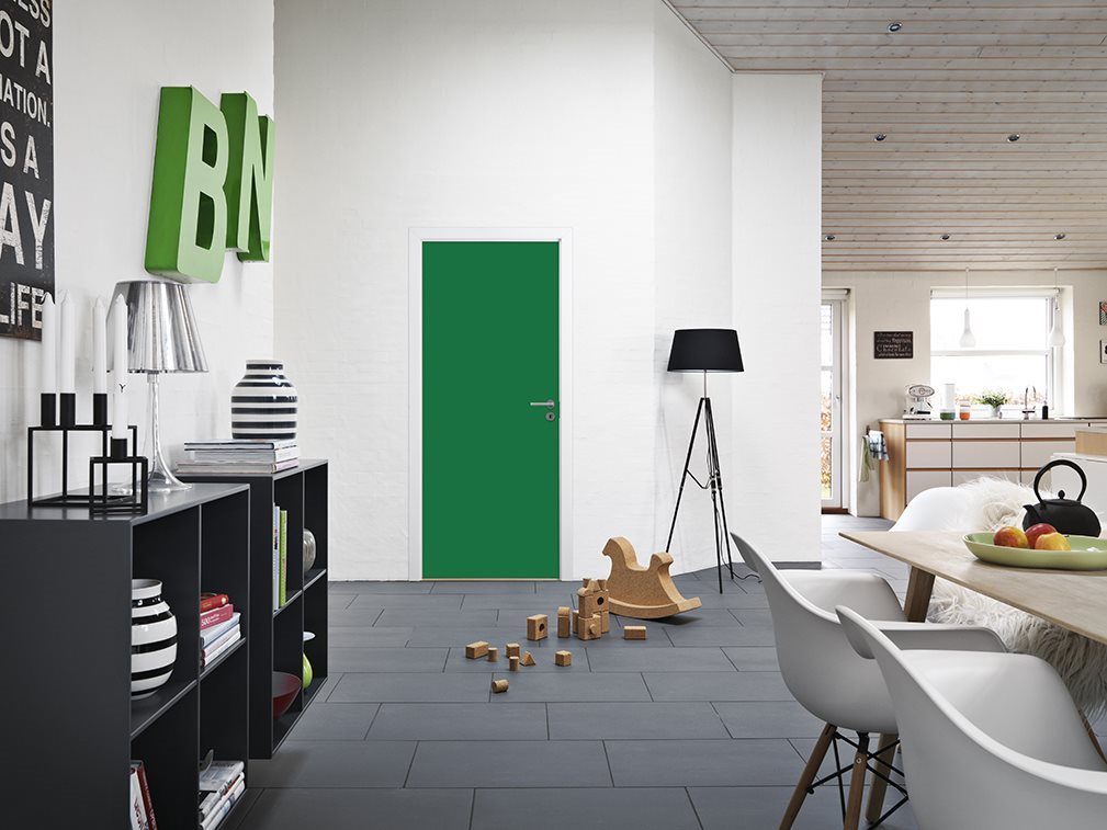 Ovi on saatavilla kaikissa NCS S -värisävyissä tai näyttävänä tammipystyviilulla, joka tuo tilaan luonnollista lämpöä ja arvokkuutta. Piilosaranoitu rakenne viimeistelee kokonaisuuden: saranat jäävät täysin piiloon oven ollessa kiinni, jolloin ilme on erityisen selkeä ja arkkitehtoninen.