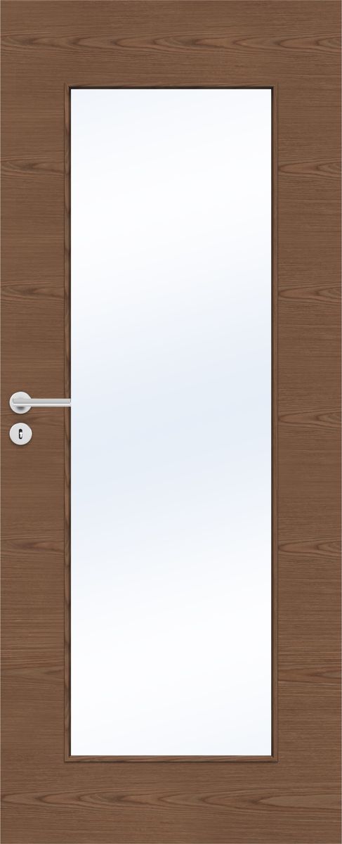 Ovessa on vakiona kirkas lasi, joka lisää tilan avaruutta ja valoisuutta. Kirkkaan lasin lisäksi saatavilla ovat satiinilasi ja chincilla-lasi, jotka tarjoavat lisää näkösuojaa ja pehmeämmän valon – erinomainen valinta esimerkiksi työhuoneisiin ja makuutiloihin.