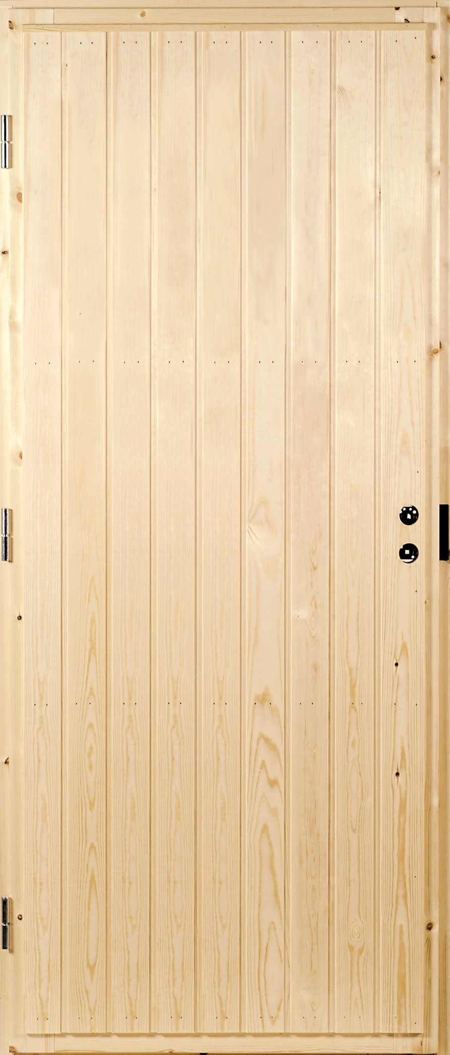 Varastoitavat Mökki1-paneeliovet toimitetaan puuvalmiina.