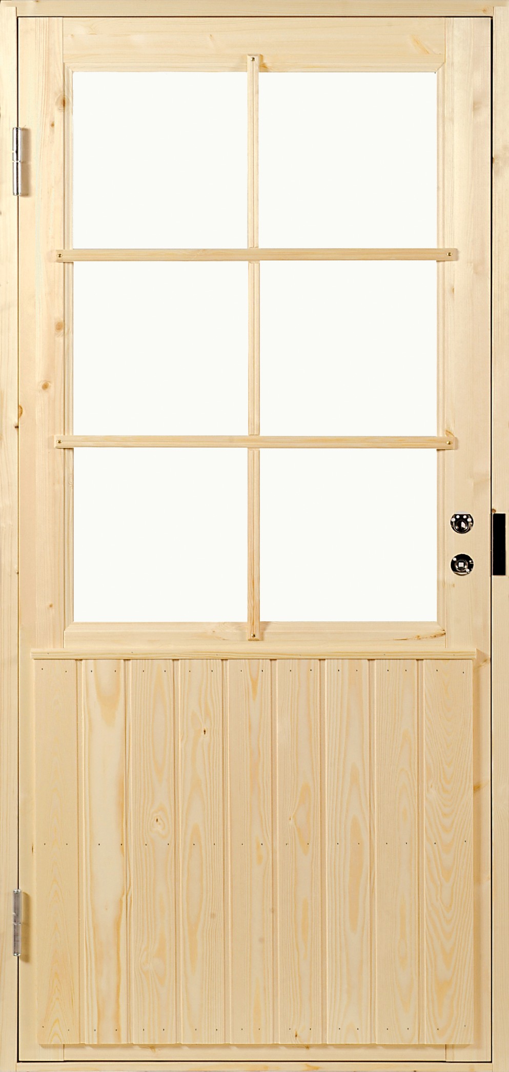 Varastoitavat Mökki1-paneeliovet toimitetaan puuvalmiina.